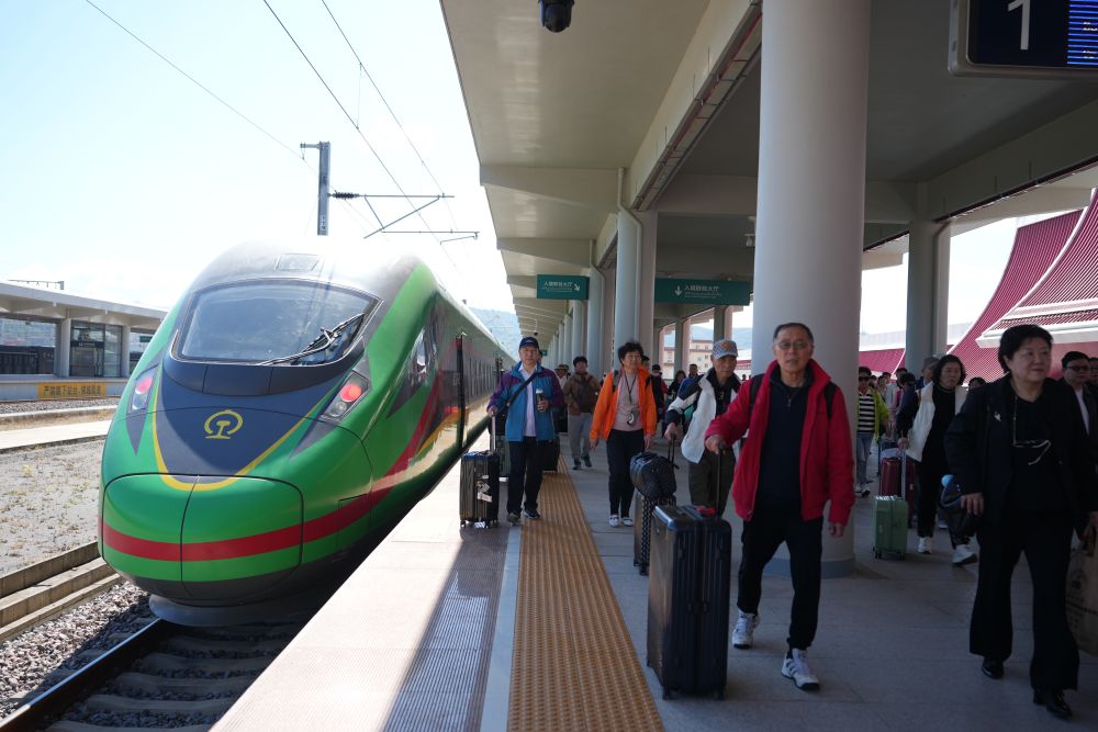 2024年12月3日,乘客在磨憨站准备换乘前往老挝。