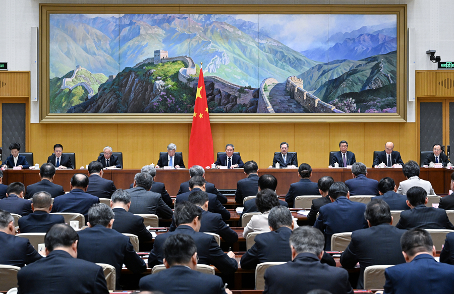 中共中央政治局常委、国务院副总理丁薛祥主持会议。国务院副总理何立峰、张国清、刘国中,国务委员王小洪、吴政隆、谌贻琴出席会议。