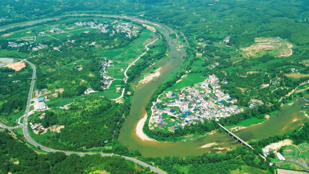 2024年8月11日在福建省长汀县拍摄的汀江两岸景色(无人机照片)。新华社记者陈为 摄