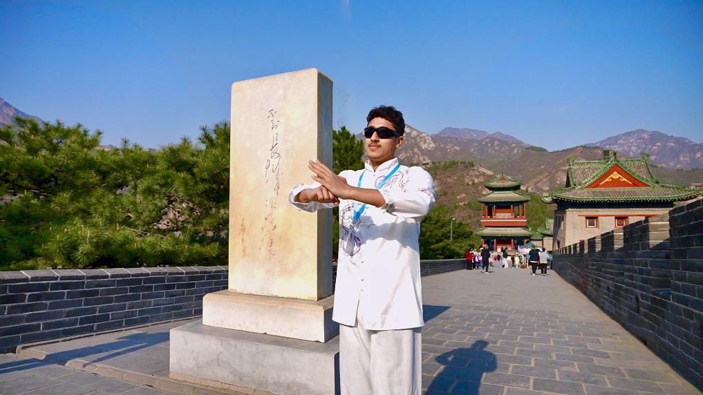 又是一年春好时。4月6日,站在长城上,爱好中国功夫的阿联酋学生哈姆丹·艾哈迈德特意穿上崭新的中式服装,表演了一套中国功夫,一招一式颇有气势。“我想在中国学习中文和更多功夫!”哈姆丹还是乒乓球爱好者,整天球不离手。他期待这次有机会和中国朋友一起切磋球技。