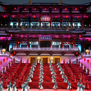这是2023年5月18日在陕西省西安市大唐芙蓉园拍摄的中国-中亚峰会欢迎仪式。新华社记者 申宏 摄