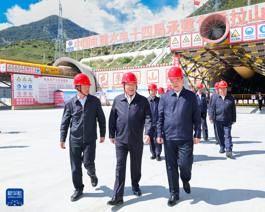 7月18日至19日,中共中央政治局常委、国务院总理李强在西藏调研。这是7月18日在林芝,李强来到川藏铁路色季拉山隧道出口,察看隧道现场施工情况,了解建设进展。