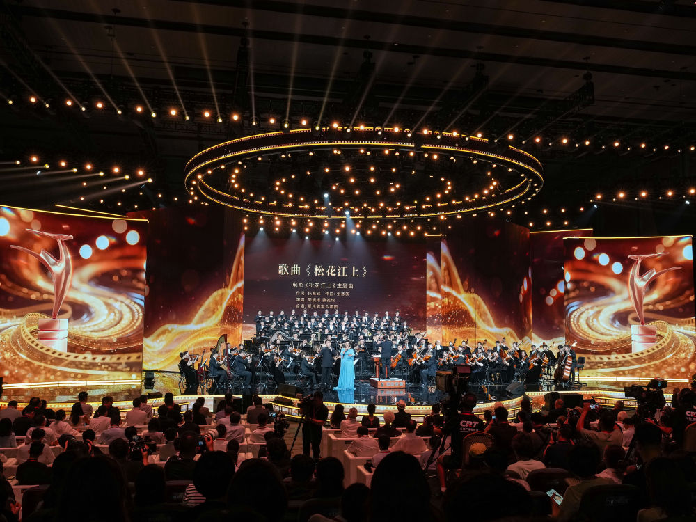 2025年8月23日在吉林长春拍摄的第二十届中国长春电影节开幕式暨长影成立80周年交响音乐会现场。93部华语影片参加金鹿奖角逐。中国电影人再次齐聚“光影摇篮”,共话华语电影发展新篇。