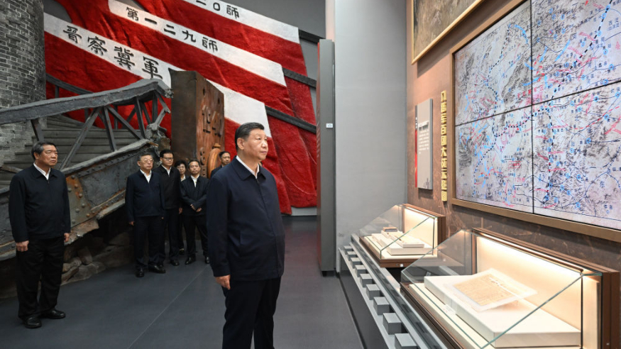 - 7日下午,习近平总书记在山西省阳泉市考察。他来到百团大战纪念碑广场,向百团大战烈士敬献花篮,参观百团大战纪念馆,缅怀抗战烈士英雄事迹,重温中国共产党领导抗日军民同仇敌忾、勇御外侮的光辉历史,了解当地开展革命历史教育、传承弘扬伟大抗战精神等情况。