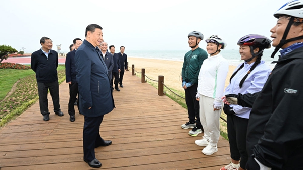 22日下午,习近平总书记在山东省日照市考察调研。他来到阳光海岸绿道,了解当地加强海岸线生态保护修复、提高人民生活品质等情况。