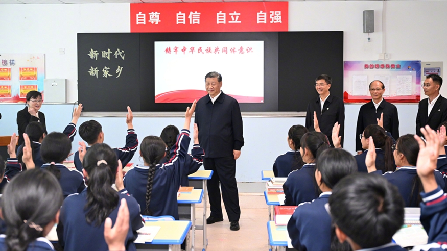 6月18日下午,习近平总书记在青海省考察调研。他来到西宁市的果洛西宁民族中学,了解当地深入推进教育工作东西部协作和对口支援、加强铸牢中华民族共同体意识教育等情况。