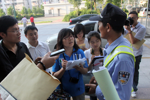 嘉兴城管巡查员接受记者采访