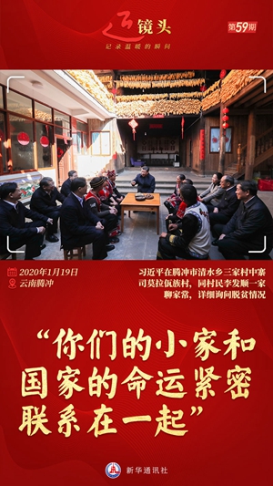 2018年2月11日上午,农历新年前夕,习近平总书记在凉山彝族自治州昭觉县三岔河乡三河村考察慰问时,在当地村民吉木子洛老阿妈家结束座谈后,返程路上同前来送别的彝族村民打招呼。