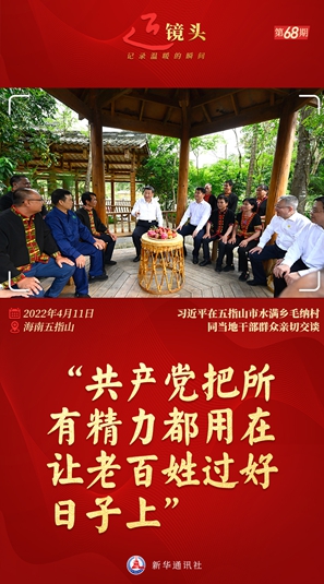 2022年4月11日下午,习近平总书记来到海南省五指山市水满乡毛纳村考察调研。村寨凉亭里,乡亲们正议农事。