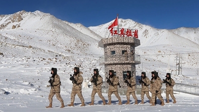 一大早,新疆军区红其拉甫边防连的官兵踏上巡逻路。当天的巡逻点位,是距离连队49公里的木孜吉里阿达坂,点位海拔5200多米。“为了确保全国人民度过一个欢乐祥和的春节,边境沿线都加强了管控力度,我们连队也增加了巡逻频次。”连队指导员冯康佶说。
