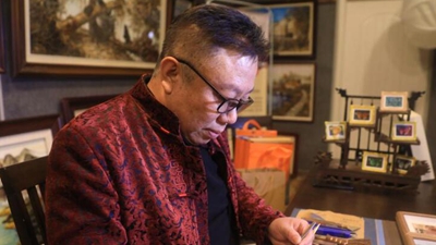 春节期间,山东济宁曲阜市尼山镇鲁源新村的“黄河大集”上熙熙攘攘,“00后”非遗爱好者王欣秋把“仁、义、礼、智、信”等含有儒家文化的字句制作成丝弦画,引来不少游客驻足。