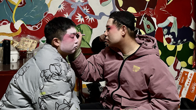 梳头、插头面,油彩涂脸,假发贴鬓角,青墨画眉,彩衣上身……在山东省德州市夏津县白马湖镇马堤村的戏台上,伴着竹笛、唢呐的乐点,王玉坤扮的老旦迈着碎步走上台来。一亮嗓,就激起了台下父老乡亲的掌声和“叫好”声。
