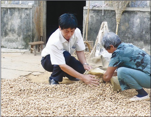 沈浩帮老大娘收花生