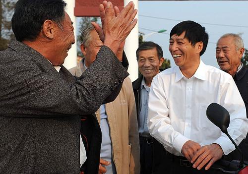 沈浩与村民交流小岗村发展