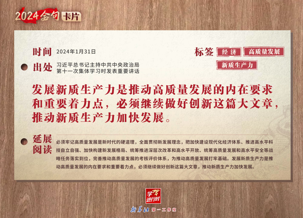 学习进行时丨2024金句卡片:习近平总书记谈“新质生产力”,这些话很深刻-新华网