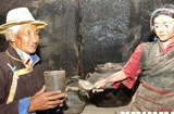 格桑顿珠在帕拉庄园“农奴大灶”女农奴蜡像前