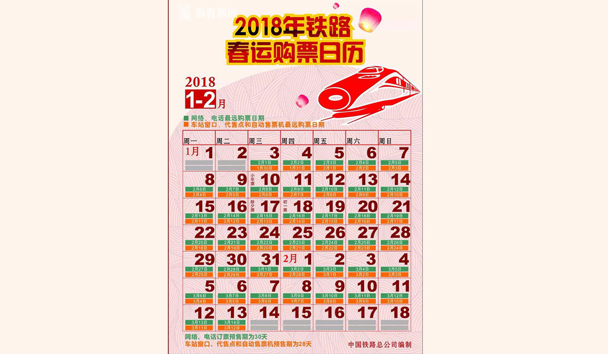 春运购票日历,请收!