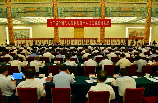 十二届全国人大常委会第十六次会议举行联组会议,就全国人大常委会执法检查组关于检查《中华人民共和国水污染防治法》实施情况的报告进行专题询问。