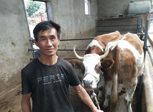 通化镇石岔村地处关山林缘区,草料丰富,当地一直有养牛的传统。“看着人家养牛,我也眼热,但我一没有技术二没有本钱,想养也养不起。”石永旺家共有5口人,由于孩子小,他不能外出打工,日子过得很紧巴。