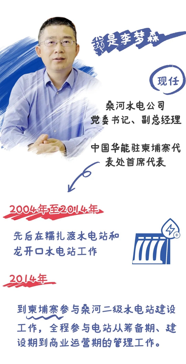 我是一名生活在柬埔寨的华能员工,也是桑河当地村民的“铁杆兄弟”。曾经的我从未想过有一天会在海外生活,也从未想过能“改变”许多人的生活。如果问我来桑河这么多年最大的感受是什么,那一定是骄傲、自豪。宏伟的大坝、轰鸣的机组、美丽的移民村、明亮的校舍、崭新的医院、村民脸上幸福的笑容,这一切都记录着华能人所做的贡献,而我作为其中一员,倍感荣幸。