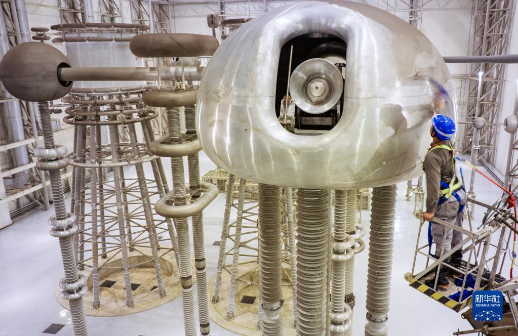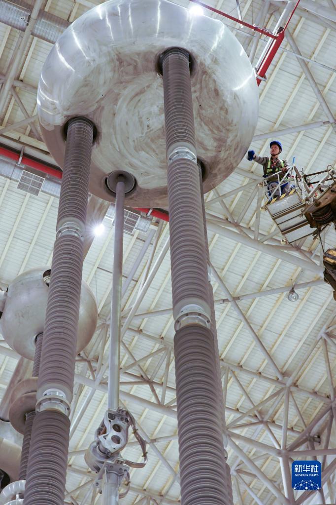 10月9日,国网安徽电力检修人员对古泉换流站设备进行检修、维护。 当日,昌吉-古泉±1100千伏特高压直流输电线路的受端站——安徽宣城古泉换流站完成“体检”。连日来,国网安徽电力的700多名电力检修人员对古泉换流站进行集中检修,有序完成39个作业面共计5200余项工作,为电网的安全稳定运行打下坚实基础。昌吉-古泉±1100千伏特高压直流输电工程起于新疆昌吉换流站,止于安徽古泉换流站,是目前世界上电压等级最高、输送距离最远、输送容量最大的输电工程。 新华社记者 刘军喜 摄