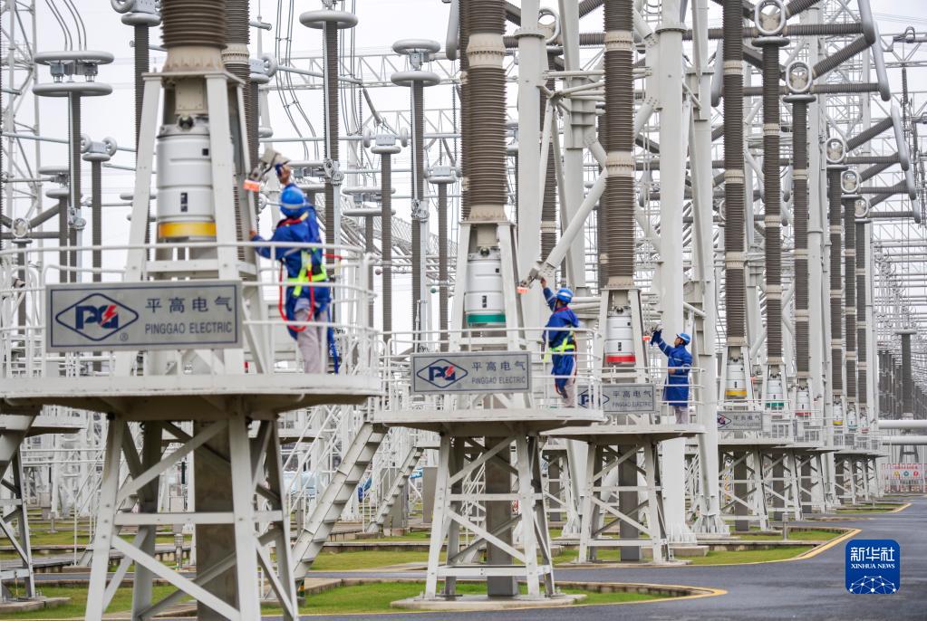10月9日,国网安徽电力检修人员对古泉换流站设备进行检修、维护。 新华社记者 杜宇 摄