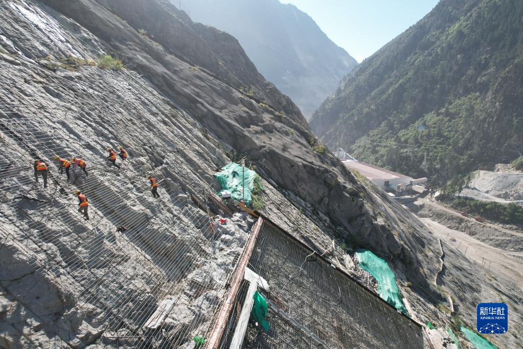建设者奋战在双江口水电站施工一线。 新华社记者 杨进 摄