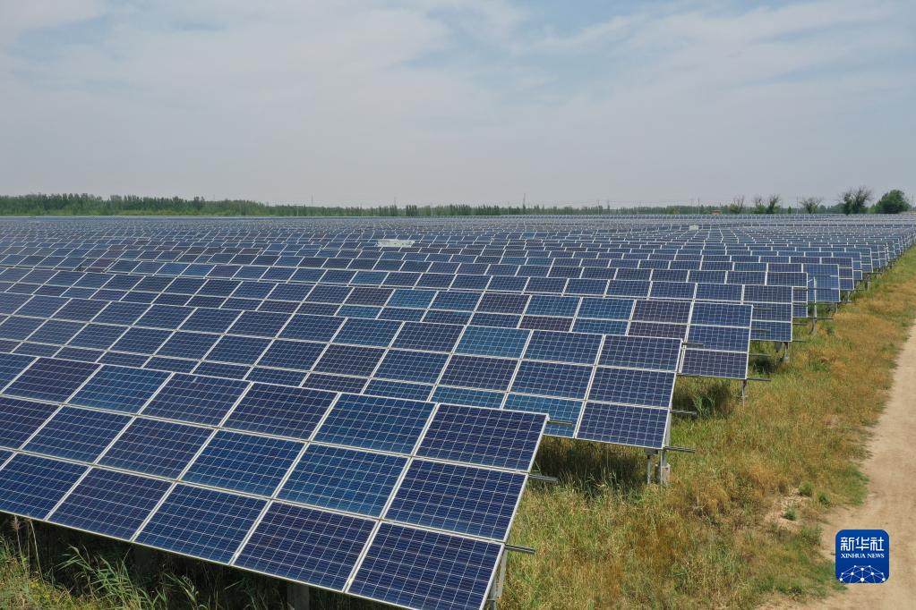 在山东省聊城市茌平区肖家庄镇算子李村,占地1200亩的鑫佳源光伏电站内,一排排蓝色的光伏电板一眼望不到头,在阳光照射下正源源不断地产生清洁电能。