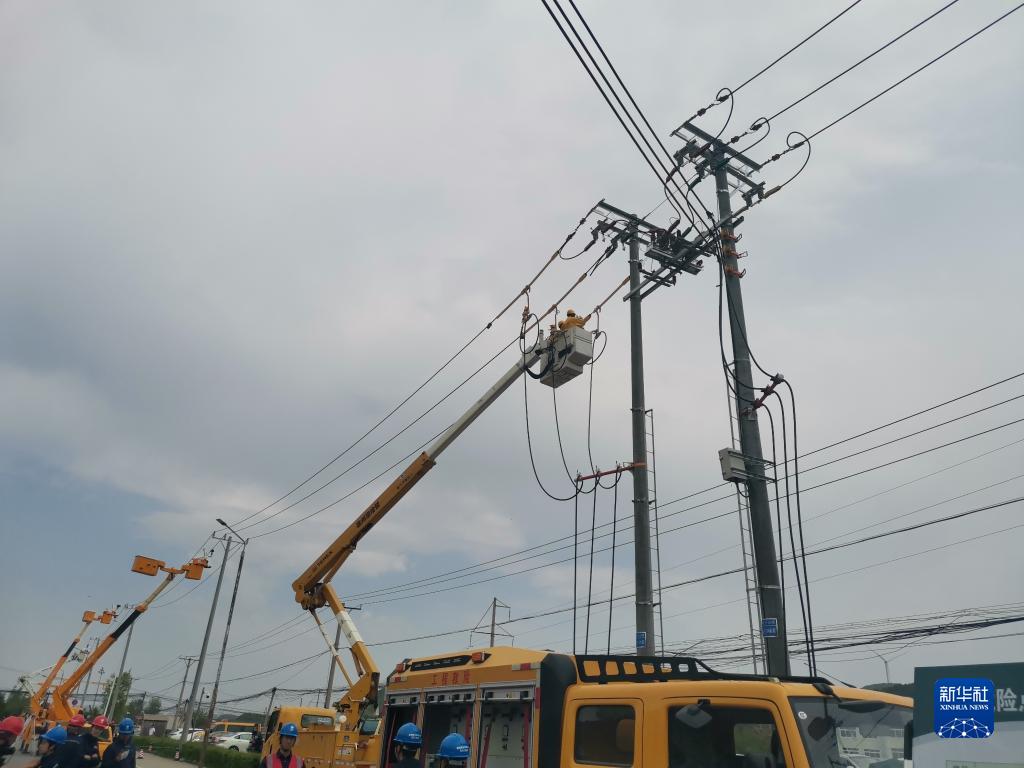 10千伏分段式旁路带电检修架空线路作业现场。 新华社记者 李宇佳 摄