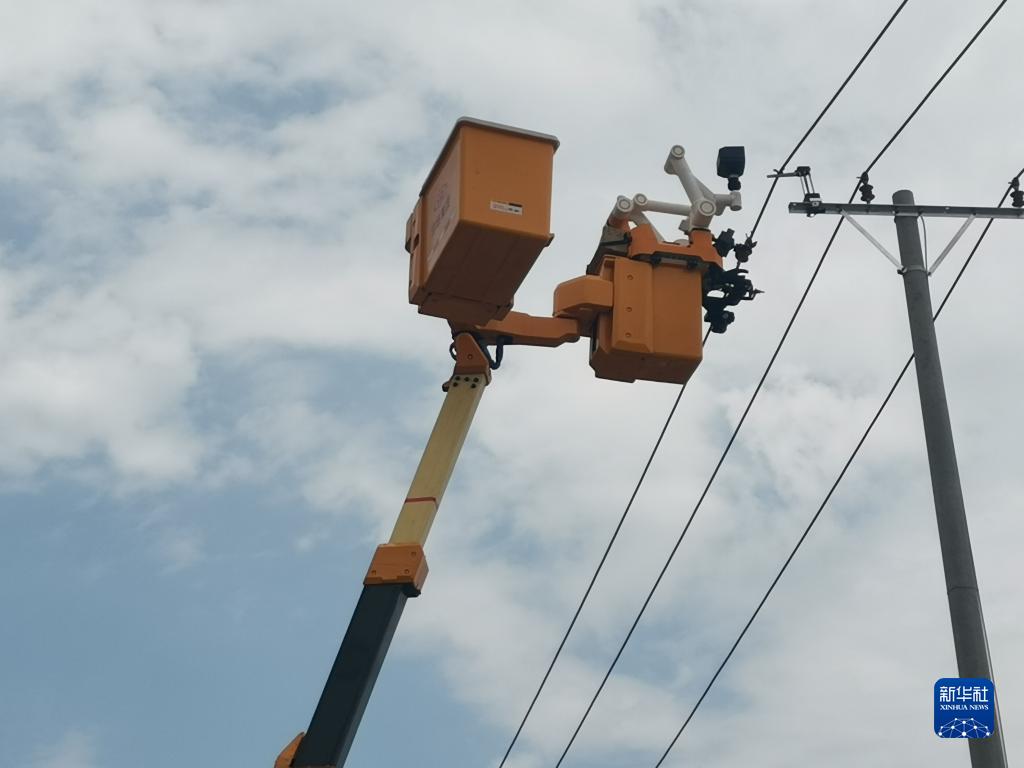 带电作业机器人现场作业。 新华社记者 李宇佳 摄