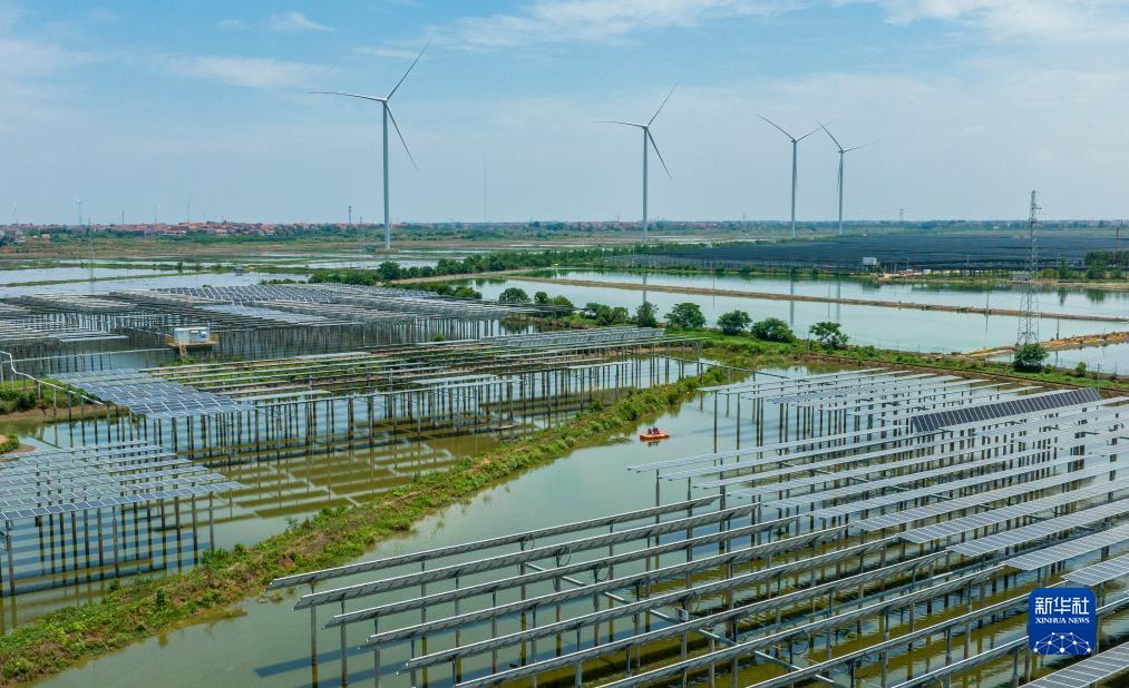 图为湖北省武穴市石佛寺镇的光伏和风力发电设施。(丰俊 摄)