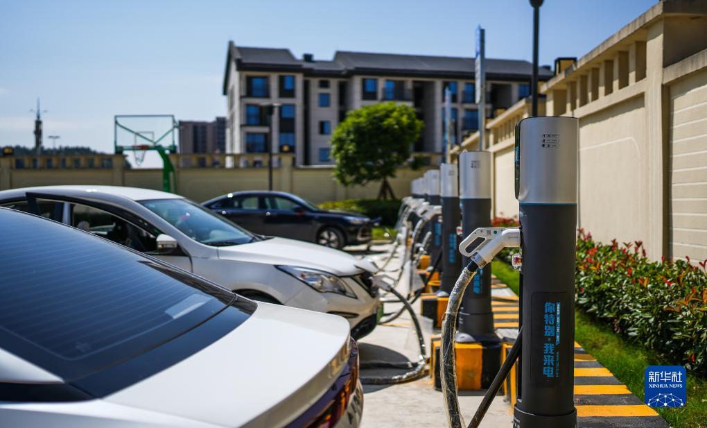 新能源汽车在黔南布依族苗族自治州龙里县谷脚镇的充电桩设施充电(10月17日摄)。 新华社记者 陶亮 摄