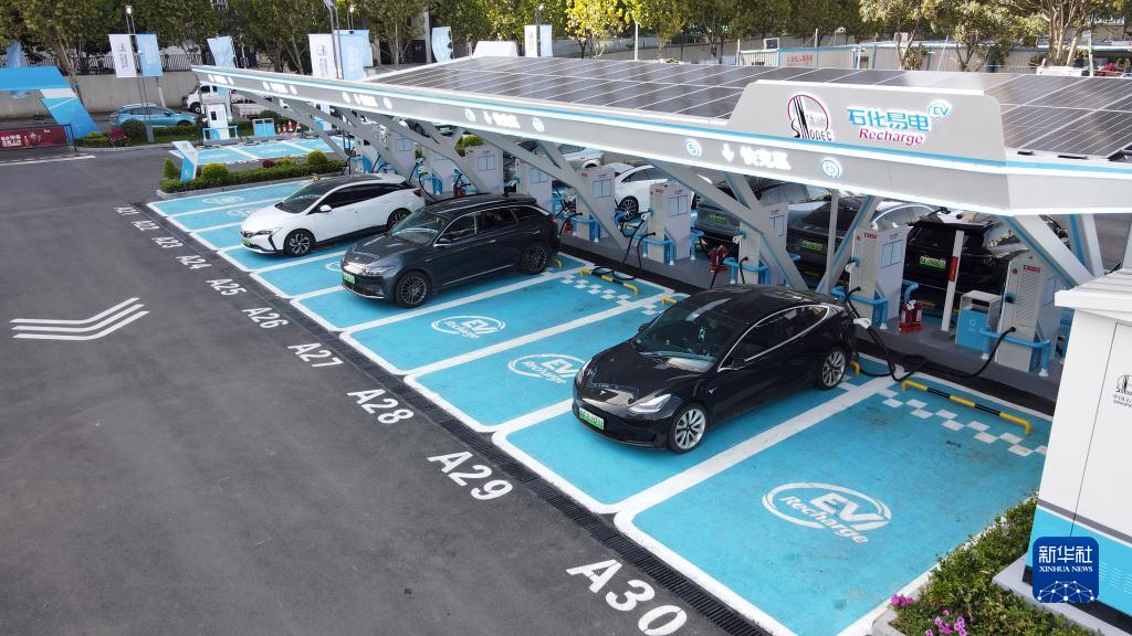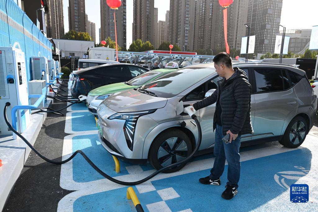 11月17日,市民在安徽石油大众综合能源站内为新能源汽车充电。 新华社记者 周牧 摄