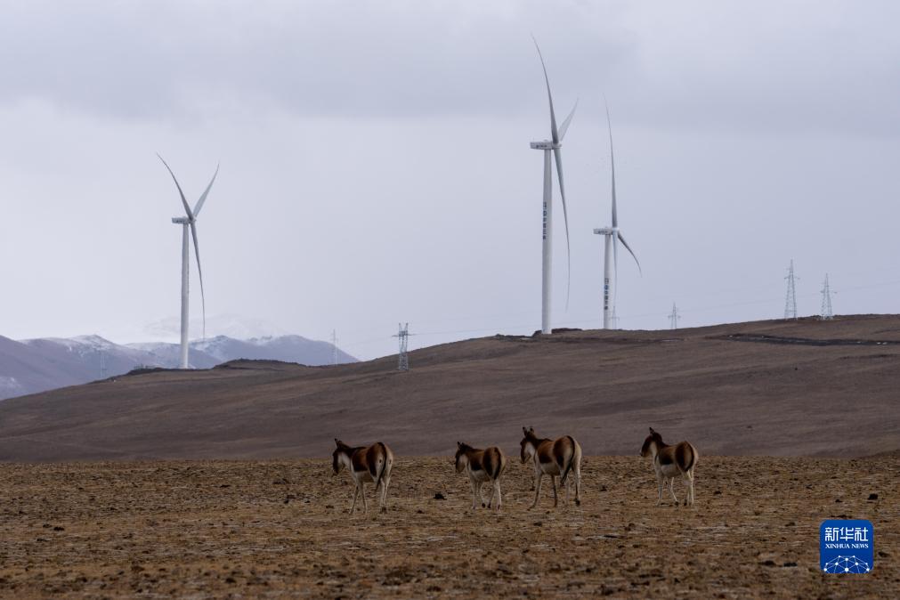 这是1月16日在西藏山南市措美哲古风电场拍摄的藏野驴。 新华社记者 旦增尼玛曲珠 摄