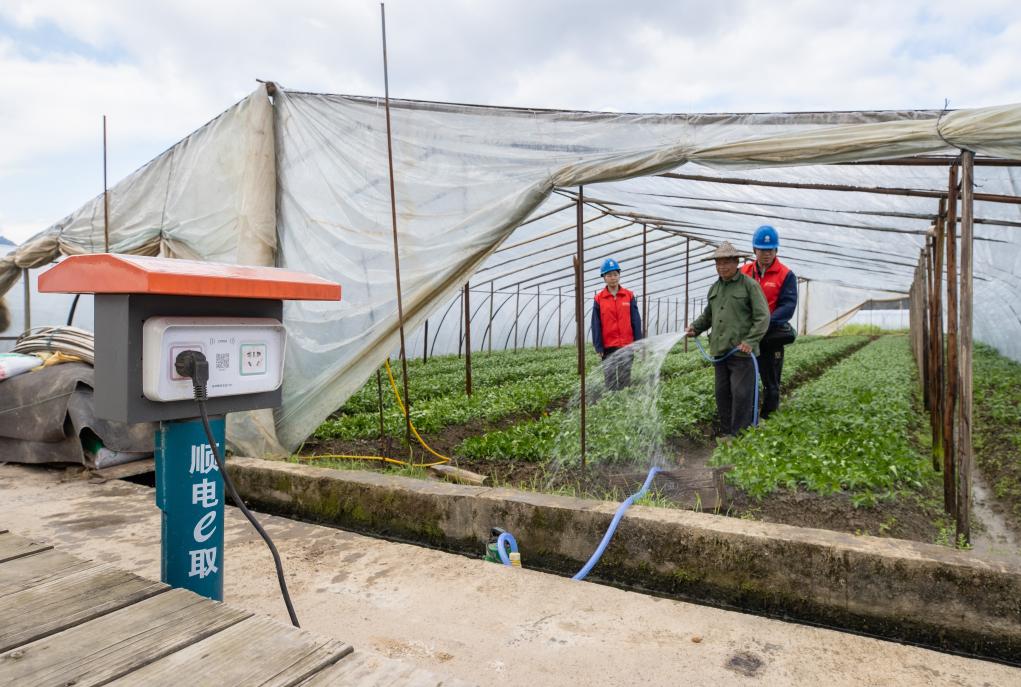 六角村的温室菜园有大棚蔬菜种植户57户,蔬菜种植面积316亩。为了解决种植户的急难愁盼,福建把该地列为“扫码用电”农田灌溉场景应用建设的首批试点之一,在2023年10月,国网闽清县供电公司为农户在田地里安装了共享电源。