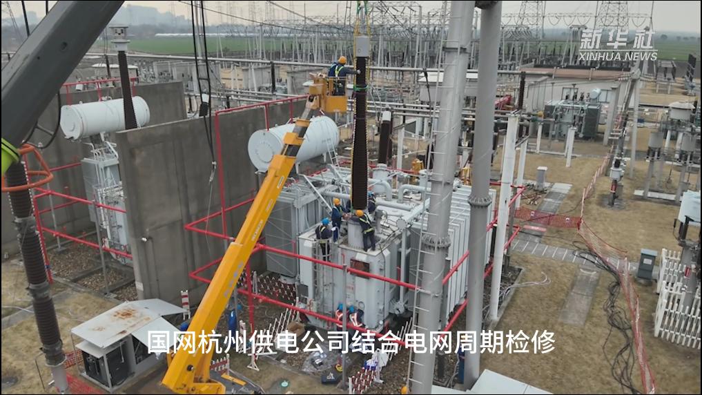 国网杭州供电公司结合电网周期检修,积极推进高耗能变压器改造,提高设备能效比和运行可靠性。日前,在杭州500千伏乔司变电站,工作人员正在进行设备检修和更新升级。