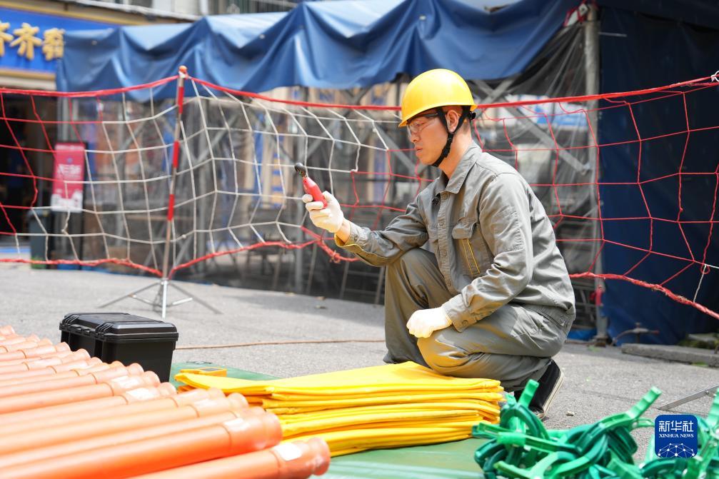 4月24日,贺彪在带电作业前进行准备工作。新华社记者 薛宇舸 摄