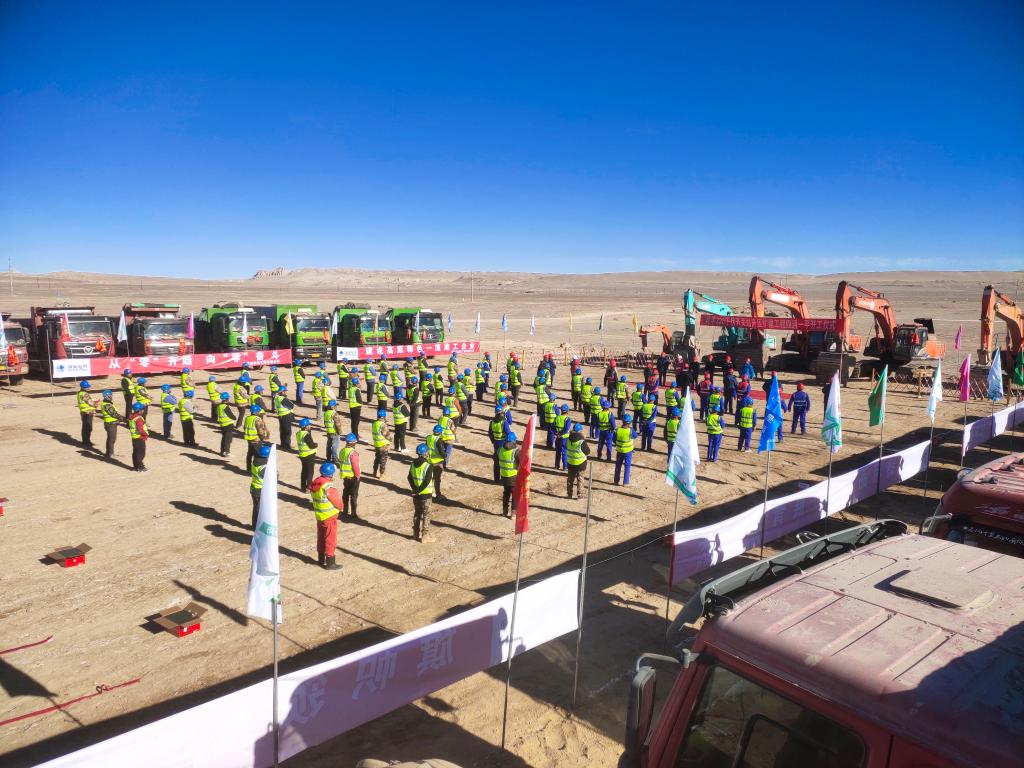 青海羚羊750千伏输变电工程开工仪式现场。(姜建华 摄)