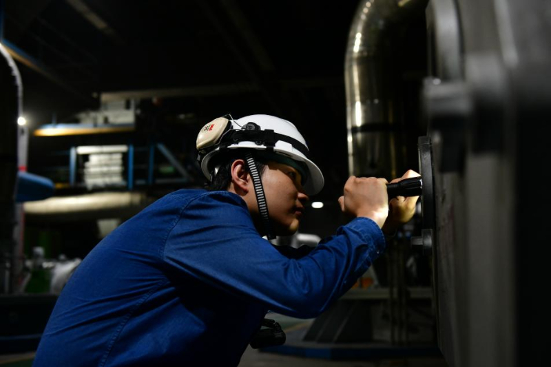 华能河北上安电厂值班员强化现场检查。鲍宁/摄