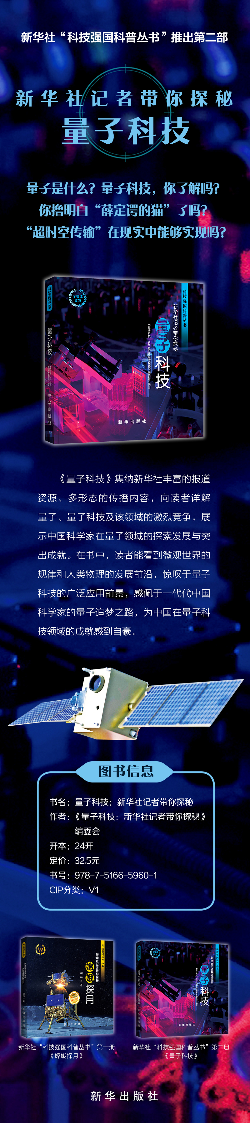 新华社“科技强国科普丛书”推出第二册《量子科技》,集纳新华社丰富的报道资源、多形态的传播内容,向读者详解量子、量子科技及该领域的激烈竞争,展示中国科学家在量子领域的探索发展与突出成就。在书中,读者能看到微观世界的规律和人类物理的发展前沿,惊叹于量子科技的广泛应用前景,感佩于一代代中国科学家的量子追梦之路,为中国在量子科技领域的成就感到自豪。