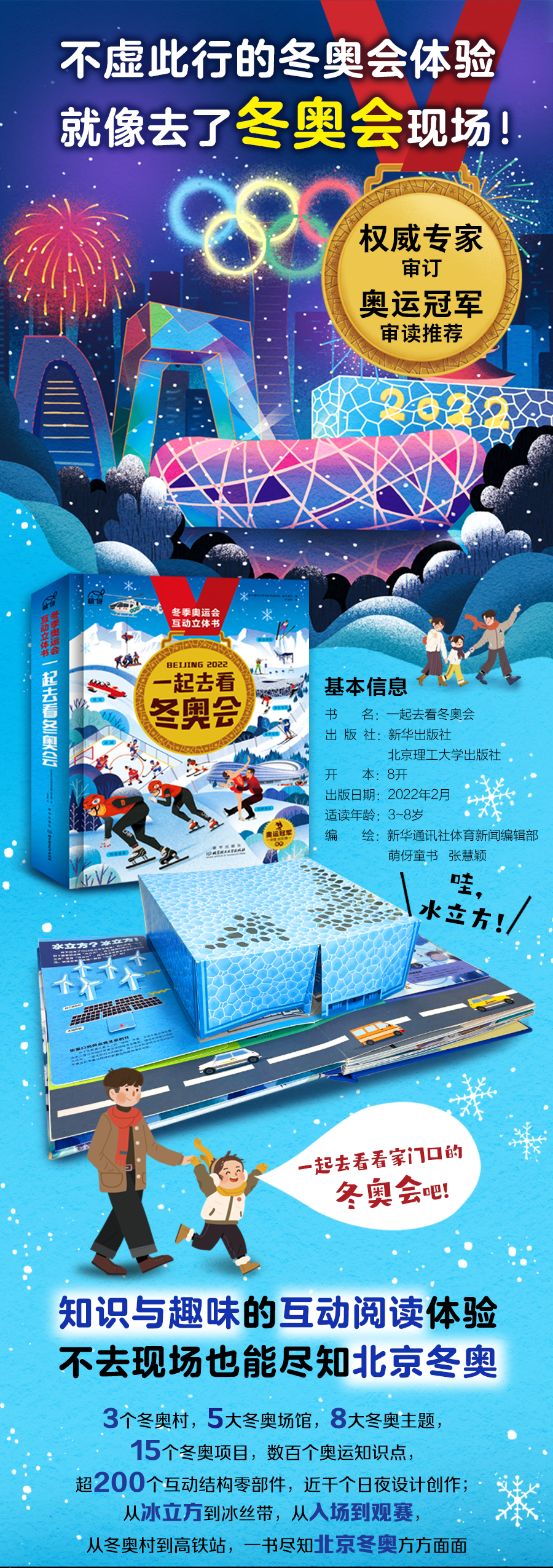 让小读者对整个北京冬奥有更深入的了解:水立方?冰立方?说变就变!冬奥入场黑科技,提前感受未来生活;高科技的冰丝带,实力与颜值并存;冬奥村里看一看,运动员的智慧生活;去冰玉环雪如意体验刺激的雪上运动;冬奥项目全知道;看看北京冬奥的幕后英雄。