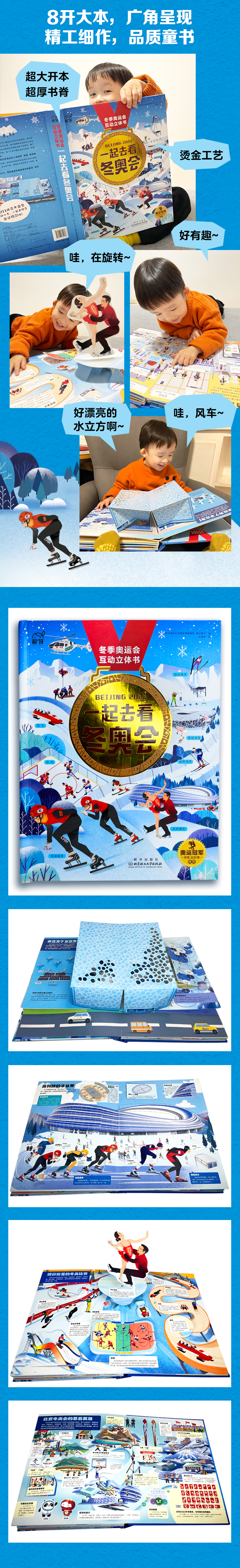 立体呈现北京冬奥场馆及项目,互动机关探索更多场馆及运动体验,翻翻激发探索兴趣,神秘又有趣,附赠冬奥元素贴纸,惊喜满满随处贴。