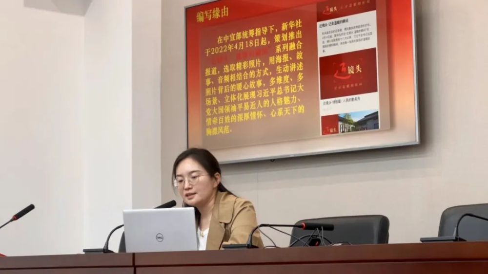 新华出版社财经图书编辑室副主任田丽丽在新华社河南分社介绍《近镜头:温暖的瞬间》一书。(易旭丹 摄)