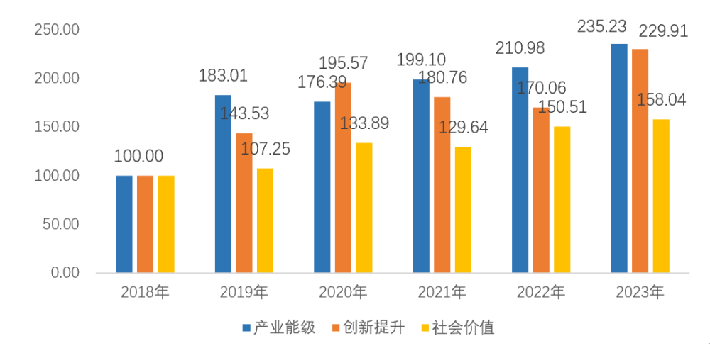 在三大分指数中,“创新提升”是上海引领游戏产业发展的主引擎。2018-2022年间,该指数在经历高速增长后趋于平缓,2023年回升至229.91点,同比增长35.19%,较基期实现翻倍,也成为带动2023年总指数加速增长的主要因素。其中,产品、技术与文化的创新均不可或缺,共同构筑了数字文化生产与消费的新增长点。