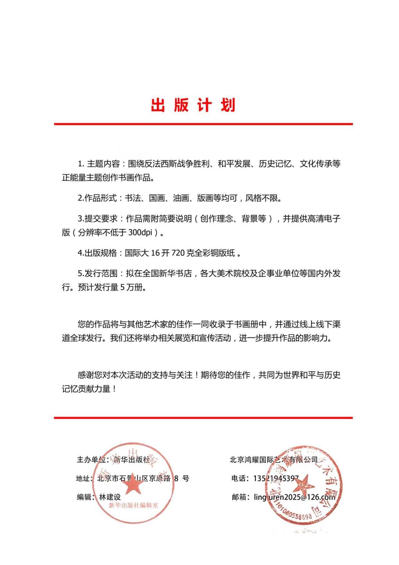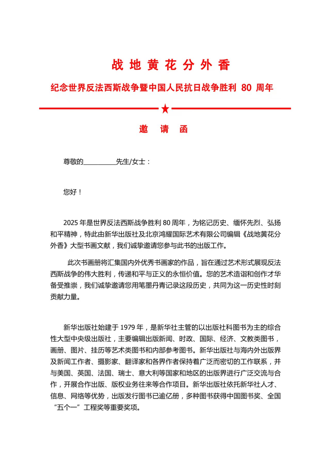 近日,我社发现有不法分子冒用我社名义,发布《战地黄花分外香邀请函》《出版计划》《入编协议》,以作品入编《战地黄花分外香》大型书画文献为诱饵,诱骗公众交纳版面设计费,实施诈骗(详见附件)。该行为严重损害我社声誉,侵害我社及公众的合法权益。对此,我社严正声明如下: