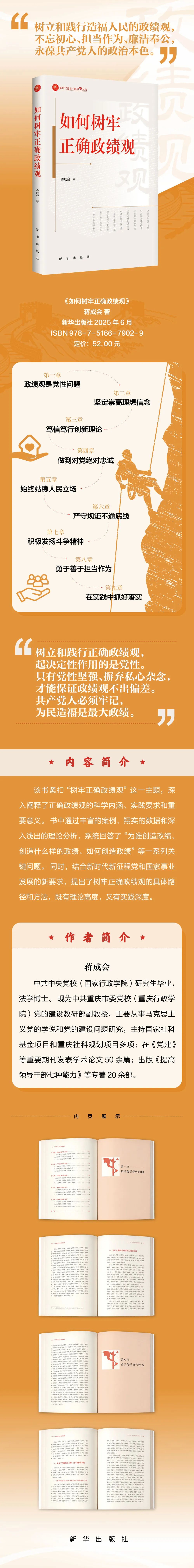 近日,《如何树牢正确政绩观》一书由新华出版社正式出版发行。这是一部聚焦党员干部政绩观建设的理论读物,对于引导广大党员干部树立和践行正确政绩观具有重要的指导意义。