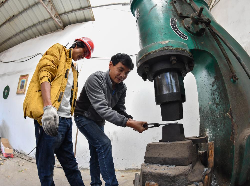 为了让古老技艺焕发新活力,寸昆杰在保持传统手工雕刻的基础上,引进空气锤、液压机、淬火机等现代工具,不断提升洛隆藏刀的制作效率。“藏刀制作,不仅仅是一份工作,更是一份传承责任。”寸昆杰说。