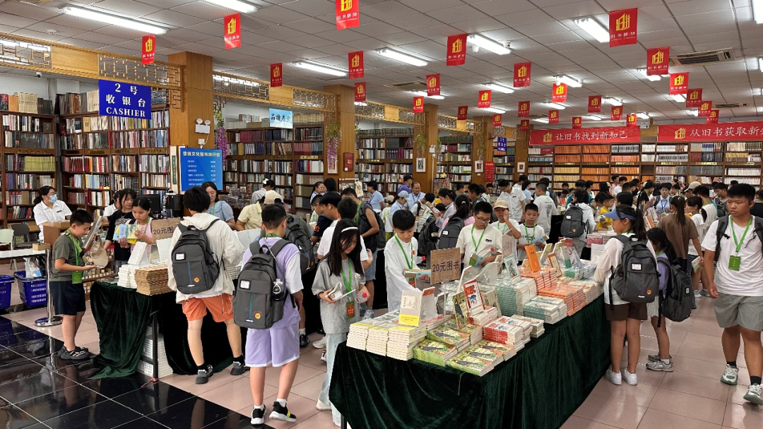 图为营员们在中国书店一层大厅挑选图书