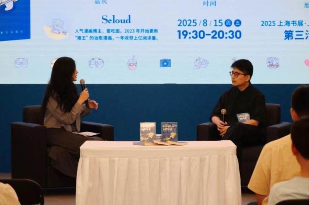 8月15日晚,《在混凝土森林里种星星》新书分享暨签售会在上海展览中心第三活动区成功举行。该书作者、知名IP“猪王”创作者、新锐漫画家Scloud携其首部治愈系漫画集亮相,吸引了众多读者热情参与。Scloud分享了自己的创作灵感与心路历程,不少老粉丝带着珍藏的“猪王”漫画前来支持,新读者也被吸引,现场互动频繁,气氛温馨。
