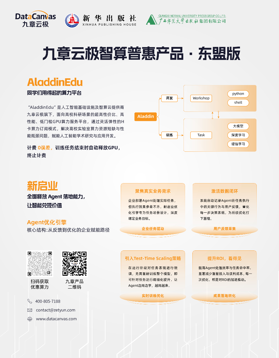 9月19日,中国—东盟人工智能出版传播创新发展中心首期成果推广活动亮相东博会。北京九章云极科技有限公司首席战略官张帆、AI首席科学家缪旭参加此次活动,九章云极发布“百校百企”算力普惠计划,凭借长期实践经验开创性定义“1度算力”,联动区域算力枢纽,为面向东盟开展算力普惠合作打下坚实基础。